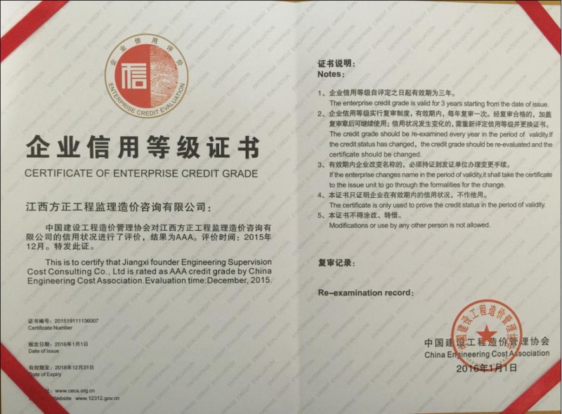 江西方正工程監(jiān)理造價(jià)咨詢有限公司于二OO三年五月在南昌市工商行政管理局注冊(注冊號(hào):360100210024211),成立的有限責(zé)任公司,先后取得建設(shè)部及江西省建設(shè)廳頒發(fā)的建設(shè)施工工程造價(jià)咨詢企業(yè)資質(zhì)、招投標(biāo)代理機(jī)構(gòu)資質(zhì)、工程監(jiān)理資質(zhì)及江西省財(cái)政廳頒發(fā)的采購代理資質(zhì),是專門從事工業(yè)與民用建筑工程造價(jià)咨詢、工程建設(shè)招投標(biāo)代理、工程監(jiān)理及采購代理的公司。
